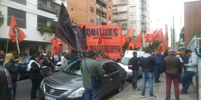 Trabajadores de EITAR junto a la UOM realizaron una movilización por todo el centro de Quilmes. Pasaron frente a la Municipalidad y por las oficinas de Edesur y Aysa para exigir que no les corten el servicio por falta de pago.