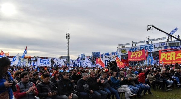 El principal orador fue Juan Carlos Alderete, presidente nacional del PTP y coordinador nacional de la Corriente Clasista y Combativa.