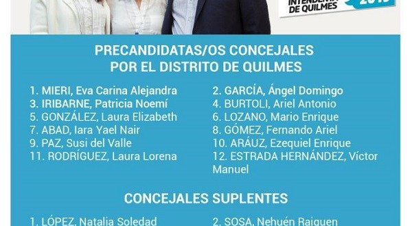 La precandidata a intendente de Quilmes por TODOS, Mayra Mendoza dio a conocer la lista de concejales y consejeros escolares.
