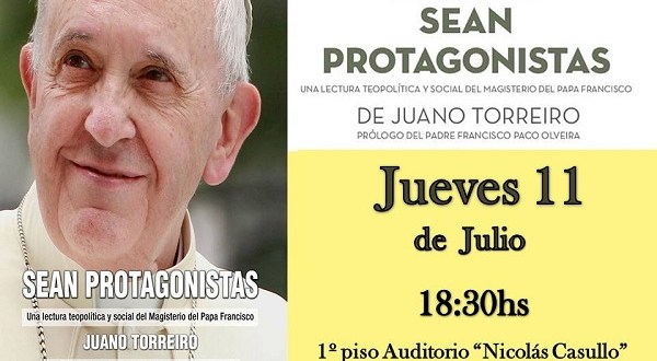 El próximo jueves a las 18.30 en el auditorio Nicolás Casullo de la Universidad Nacional de Quilmes tendrá lugar la presentación de “Sean Protagonistas”, un libro escrito por Juano Torreiro. El autor es profesor en Ciencias Sagradas, Filosofia y Formación Ética ciudadana y Presidente Diocesano de la Acción Católica de Avellaneda-Lanús, además de militante de la agrupación Tres Banderas.