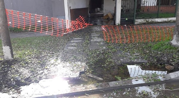 Calles, veredas y casas inundadas es el saldo de la rotura de un caño que provocó el desborde agua y cloacas en Cevallos entre Alem y Garibaldi.
