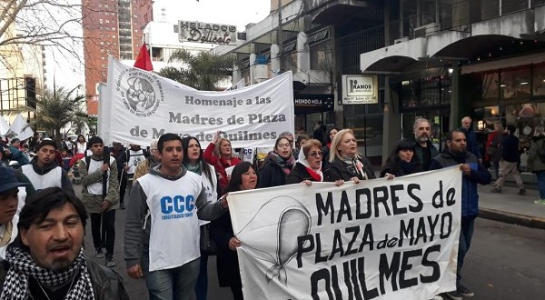 La Comisión Permanente de Homenaje a las Madres de Plaza de Mayo de Quilmes, realizó su ronda mensual en la plaza San Martín con una marcha por Rivadavia bajo el el lema «Seguimos marchando contra la impunidad de ayer y de hoy».