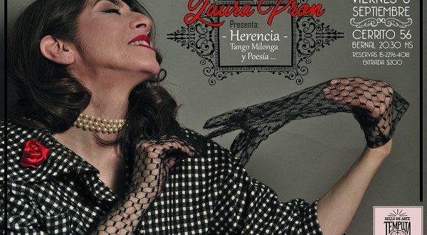 La actriz y cantante Laura Pron presentará “Herencia”, su primer trabajo discográfico de tango, el viernes 6 de septiembre, a las 20.30, en Club de Arte Tempuja, Cerrito 56, Bernal.