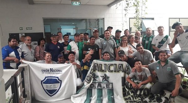 Representantes de clubes de barrio: Sebastián Gaudio (presidente Club Atlético y Social Bernal Oeste), un representante del club Defensores de La Florida y Diego Indycki (presidente de la Unión de Clubes de Barrio de Quilmes).