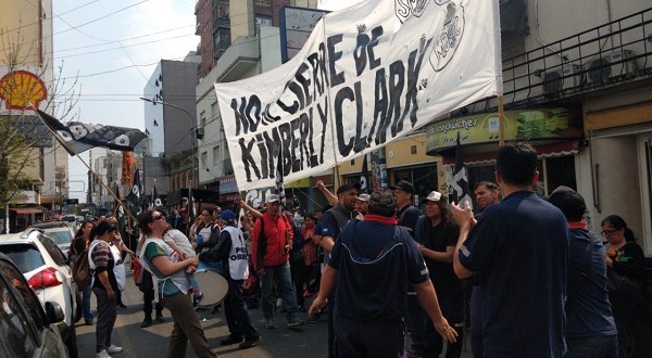 Trabajadores de la papelera Kimberly Clark de Bernal encabezaron una manifestación frente a la sede del ministerio de trabajo en Quilmes.