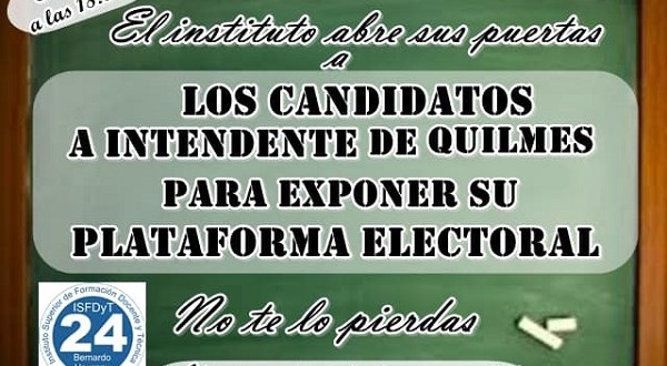 Hoy, a instancias de la iniciativa del Instituto de Formación Docente 24 de Bernal, iba a llevarse adelante un debate entre los cuatro candidatos a intendente de Quilmes.