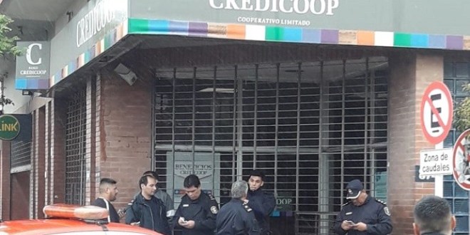 Tres delincuentes ingresaron al Banco Credicoop de Solano y se llevaron 150 mil pesos.