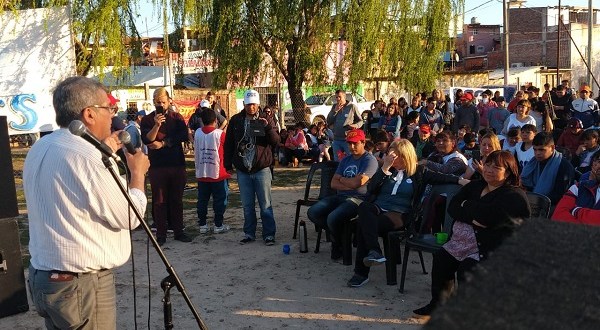 El líder de la CCC (Corriente Clasista y Combativa) y del PTP (Partido del Trabajo y del Pueblo) Juan Carlos Alderete encabezó un acto popular en Villa Itatí.