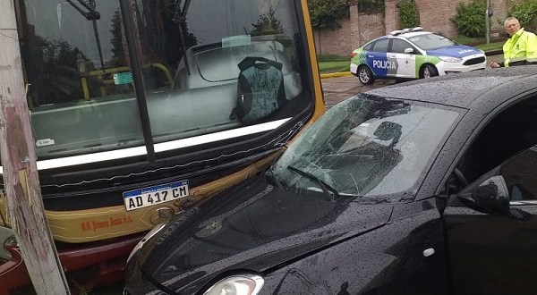 Un colectivo de la línea 324 y un auto chocaron en la esquina de Lebensohn y Paraná de barrio parque Bernal.