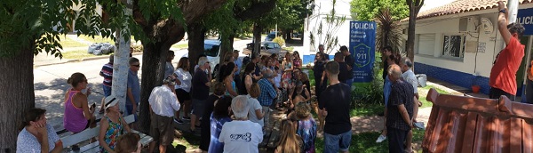 Un grupo de vecinos se reunió frente a la Comisaría Octava de Bernal, ubicada sobre la calle Paraná con el objetivo de reclamar por los reiterados hechos delictivos que se vienen registrando en las últimas semanas en Barrio Parque y Villa Crámer.