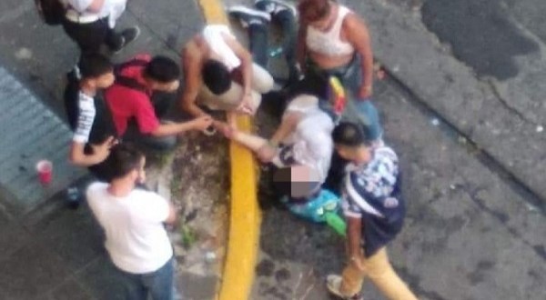 Uno de ellos trastabilló y quedó tendido boca arriba en la vereda.