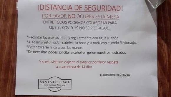 Desde Santa Fé Trail, Gustavo Charra indicó además que capacitan a empleados y proveedores: «El personal toma mayor distancia para hablar y atender a los clientes, los estornudos y la tos los cubrimos con los pliegues del codo, repetimos sistemáticamente el lavado de mesas y manos y compartimos la información asociada sobre los consejos profesionales sobre desinfeción», explicó.