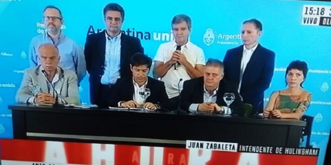 La intendenta de Quilmes participa de la conferencia de prensa que encabeza el gobernador bonaerense Axel Kiciloff tras la reunión con Alberto Fernández con el objetivo de coordinar acciones entre los jefe comunales del conurbano ante el avance del coronavirus.