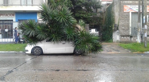 El Gol blanco, que estaba estacionado, quedó cubierto de las ramas.