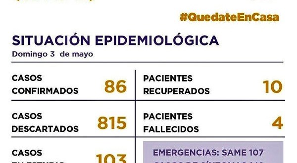 El reporte diario indica que hasta el 3 de mayo se han notificado 1.008 casos sospechosos de COVID-19.