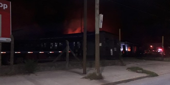 El fuego se inició a las 5 de la madrugada, en un galpón en cuyo interior habia 5 camiones, zampies, y bobinas de papel. Además del fuego y humo que provocó la caída del techo, también hubo explosiones de los neumáticos de los camiones.