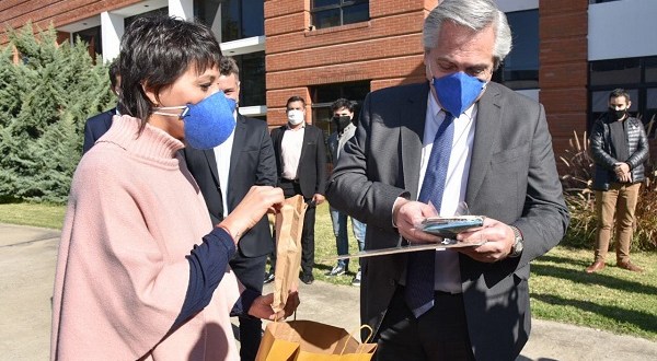 “Es un orgullo recibir a nuestro Presidente en la ciudad y visitar esta planta que está fabricando barbijos. En este contexto de emergencia sanitaria es una apuesta a la producción e implica un gran esfuerzo”, aseguró Mayra Mendoza, que durante la recorrida le obsequió al Presidente un conjunto de barbijos elaborados por emprendedores locales “en nombre de todo el Pueblo quilmeño”.