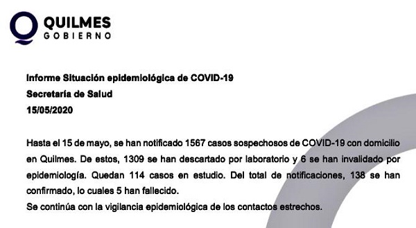 «Lamentamos el fallecimiento de una vecina de quilmes de 29 años con comorbilidades.