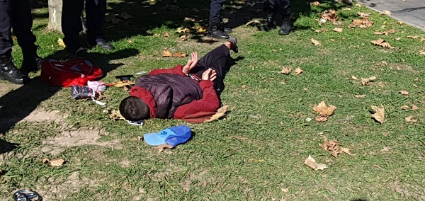 Los vecinos, mientras aguardaban la llegada de la Policìa, lograron detener a uno de ellos.