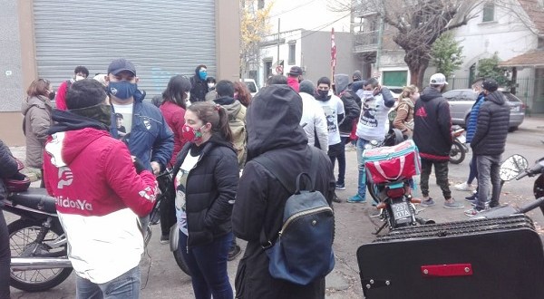 A la movilización, que se inició en San Martín y Colón, detrás del hipermercado Coto, se sumaron trabajadores de las diferentes aplicaciones de reparto a domicilio que denuncian la precarización de su trabajo.