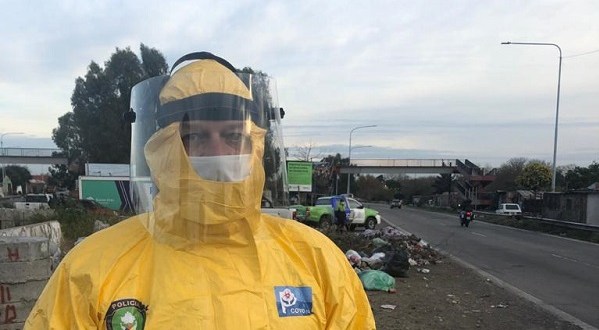 El ministro de Seguridad bonaerense, Sergio Berni, supervisó esta tarde los operativos de control y cumplimiento del aislamiento en Villa Azul, el asentamiento ubicado en la zona del acceso sudeste y que comparten los municipios de Quilmes y Avellaneda.