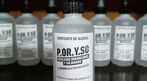 La Comisión de Mujeres y los Trabajadores de Ansabo Bajo Gestión Obrera, decidió reconvertir parte de la fábrica para producir elementos sanitizantes y poder colaborar con la comunidad.