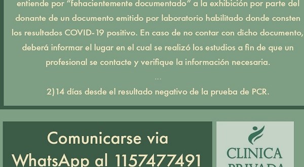 Una vez pasados los 14 días del último resultado negativo de la prueba de PCR, ya podrán donar.