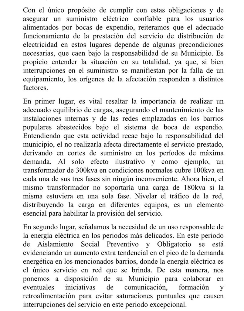 La empresa distribuidora también hizo hincapié en el aumento de consumo en el marco del aislamiento por la pandemia de coronavirus y un «aumento extra tendencial del pico de la demanda energética» y pidió «un uso responsable de la energía».