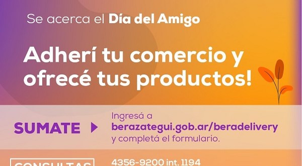 Este Día del Amigo será diferente y la Municipalidad invita a los vecinos y a los comercios a utilizar “Bera Delivery”, para conseguir y ofrecer los mejores y más accesibles obsequios y demostrar este 20 de julio que la distancia no es afectiva. La Plataforma online tiene beneficios tanto para los consumidores como para los comerciantes, sobre todo en el contexto actual y en vísperas de una fecha especial para los argentinos.