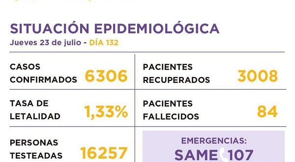 De acuerdo al informe emitido por la Municipalidad, son 6.306 los casos de coronavirus desde el inicio de la pandemia, 301 más que ayer.