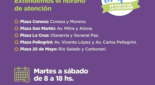 El Municipio de Quilmes informa que fueron ampliados los horarios de atención de los EcoPuntos ubicados en distintas plazas del distrito. De esta manera, con el nuevo cronograma indica que estarán abiertos de martes a sábados de 8 a 18.