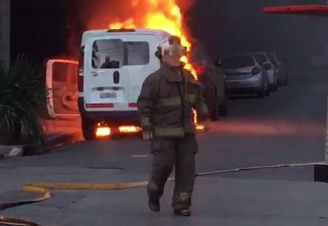 Una camioneta que estaba estacionada en Colón esquina Brown, frente a la heladería El Polo se prendió fuego.