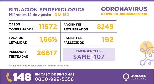 De acuerdo al último informe epidemiológico emitido por la Municipalidad, son 12.571 los casos de coronavirus en Quilmes desde el inicio de la pandemia, 319 más que ayer.