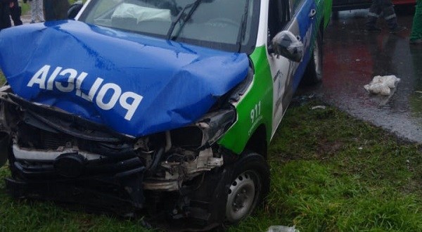 Un móvil policial que se presume venía persiguiendo a delincuentes en 838 y 894 chocó a una camioneta que terminó incrustada contra unos arbustos que estaban en la vereda.