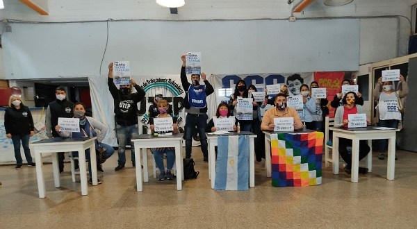 En esta conferencia participaron Mabel Montenegro referente de la CCC, la dirigente del Movimiento Evita y concejala Patricia Iribarne, Angel Norambuena de Somos Barrios de Pie, Laura Cibelli del MTE y Romina Amaya Guerrero del Partido de Trabajo y del Pueblo. Acompañando esta presentación se encontraban referentes de la UTEP, CCC, Movimiento Evita, Somos Barrios de Pie, MTE, SUTEBA, ATE, CTA Autónoma, Unidad Popular, Encuentro Peronista, Frente Popular Darío Santillan y otras agrupaciones que apoyan esta lucha, y envió su saludo el Obispo Carlos Tissera.