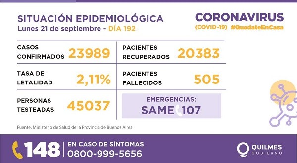 De acuerdo al informe epidemiológico emitido por la Municipalidad, son 23.989 los contagiados de coronavirus desde el inicio de la pandemia y 505 las víctimas fatales.