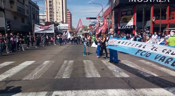 Se movilizaron desde el hospital de Quilmes hasta la plaza de la estación, donde al mediodía cortaron la intersección de Rivadavia e Yrigoyen.