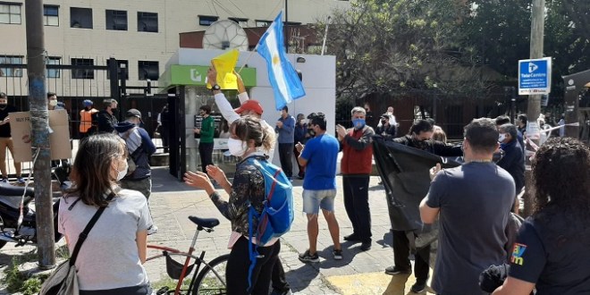 Este mediodía. dueños de gimnasios y complejos deportivos de Quilmes marcharon hacia la municipalidad para pedir que los dejen abrir.