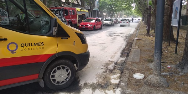 Bomberos Voluntarios de Quilmes y Defensa Civil trabajaron en el lugar esparciendo cal y material absorvente por lo que la zona estuvo cortada al tránsito varios minutos.