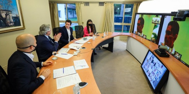 Acompañado por el ministro del Interior, Eduardo Wado de Pedro, y ante 160 jefas y jefes comunales de todo el país que se comunicaron por videoconferencia, el presidente Alberto Fernández, sostuvo: “Nos ha tocado gobernar en un tiempo muy difícil, donde la unidad de todos nosotros es importantísima para que la Argentina levante cabeza”. Y destacó: “No me importa de dónde vienen, si son radicales, si son socialistas, si son peronistas o son independientes o son Cambiemos. Lo único que quiero saber es si quieren el mismo país que yo, que es un país más justo, más solidario y más integrado, si es así abracémonos y caminemos juntos”.