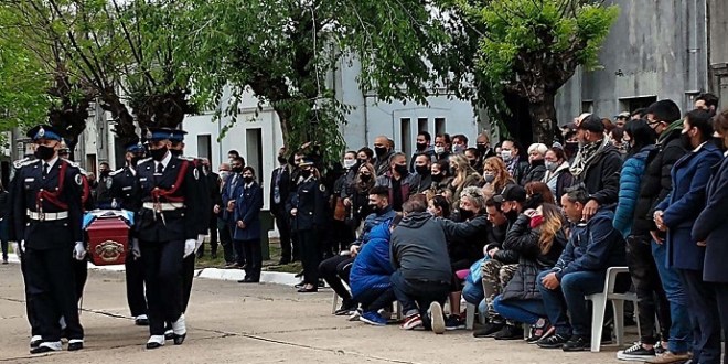 El traslado con medidas de protocolo por la pandemia de Covid-19 se realizó poco después de las 9 con no más de 15 personas que ingresaron al cementerio para la despedida, entre los que estaban la mujer del suboficial asesinado, su hija de 2 años, sus padres, hermanos y primos, muchos de ellos integrantes de una familia policial.