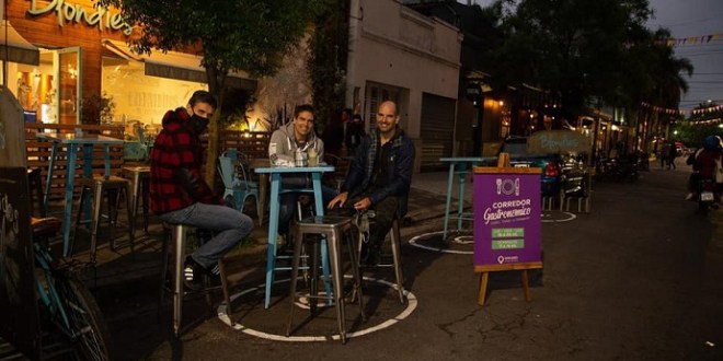 Con un esquema de peatonalización de calles en la zona de bares y restaurantes, entre las 19 y las 0 se instalaron las mesas de los locales en las calles para que los clientes puedan disfrutar al tiempo que se comienza a reactivar un sector largamente postergado por la pandemia.