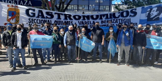 Empleados de los bingos y gastronómicos de Quilmes se movilizaron desde la plaza de la estación hasta Mitre y Rivadavia por la peatonal, para pedir la reapertura de las salas bajo protocolo.