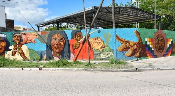 El mismo es obra del artista local Gabriel Quipildor, quien es parte del equipo de Arte Público y Muralismo del Municipio, e identifica a algunos de los pueblos de nuestro territorio, cada uno de ellos con un viento y un instrumento en su representación. Así por ejemplo, puede verse a los Diaguitas con el erque, referido al viento norte; los Selknam y Yámanas con la flauta de hueso, en el sur; los Pehuenches o Mapuches con la trutruca, o los Querandíes con una flauta de madera, identificados por el viento sudestada.
