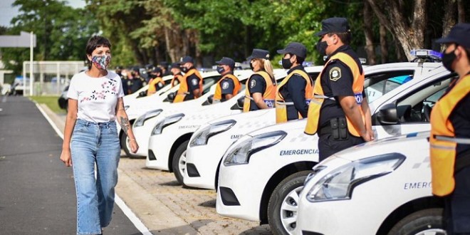 “Estos son los 10 primeros móviles de 130 que vamos a recibir, y que son una política integral, sumada a las luces LED que estamos colocando: son 18 mil luces LED en todo el distrito, más las alarmas comunitarias. En las próximas semanas son 800 las alarmas comunitarias que se colocarán en los distintos barrios, y también las cámaras de seguridad: cámaras que cuando llegamos al Municipio nos encontramos que no tenían funcionamiento, y hoy además hemos incorporado cámaras en distintos puntos para poder además aportar a la Justicia, herramientas que puedan esclarecer los distintos hechos”, expresó la Jefa comunal.