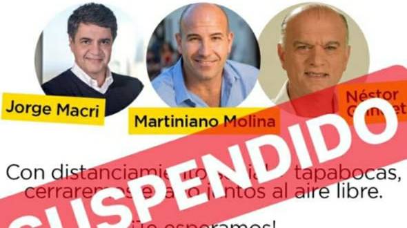El encuentro PRO Quilmes, pautado para hoy martes 22 de diciembre, del que participarían Jorge Macri, Martiniano Molina y Néstor Grindetti, quedó suspendido hasta nuevo aviso. La decisión fue tomada para cumplir con la actualización de los protocolos sanitarios exigidos por el Gobierno de la provincia de Buenos Aires, en cuanto al número de asistentes permitidos a actos públicos. Desde el espacio del PRO, aprovechamos la ocasión para recordarles a los vecinos que las medidas de cuidado personal y social deben ser la prioridad, de cara a un aumento significativo de la cantidad de contagios de COVID-19. Les deseamos que tengan todos unas felices fiestas y deseamos que el próximo año nos encuentre trabajando nuevamente juntos para lograr el país que merecemos.