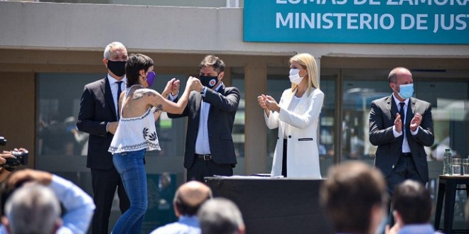 La intendenta de Quilmes, Mayra Mendoza, participó esta mañana del acto en el que el presidente de la Nación, Alberto Fernández, y el gobernador bonaerense, Axel Kicillof, presentaron la culminación del Plan de Infraestructura Penitenciaria Provincial 2020, que con una inversión de 800 millones de pesos permitió sumar 1.222 plazas e inaugurar cinco nuevos hospitales en cárceles bonaerenses.
