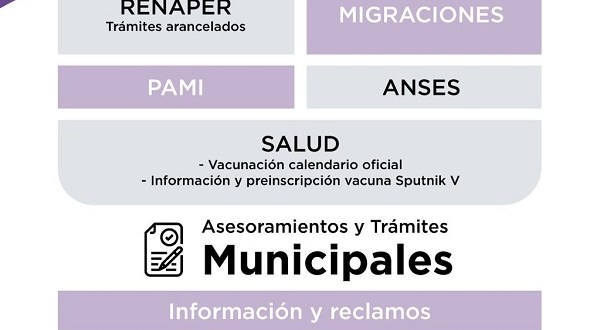 Dichas jornadas se realizarán de 9 a 14, y el horario de atención de los trámites arancelados del RENAPER será de 10 a 18. Desde la Secretaría de Salud local habrá vacunación correspondiente al calendario oficial; además de brindar información, estará disponible la preinscripción para la aplicación de la vacuna Sputnik V.