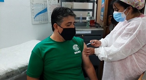 El secretario general de ATE Quilmes, Claudio Arevalo, quien se desempeña como trabajador de la salud, se aplicó la vacuna Sputnik V en el Hospital de Solano.