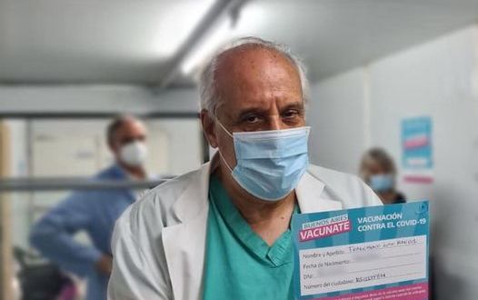 El doctor Juan Fragomeno, director del Hospital Iriarte de Quilmes recibió ayer la primera dosis de la vacuna contra el coronavirus.